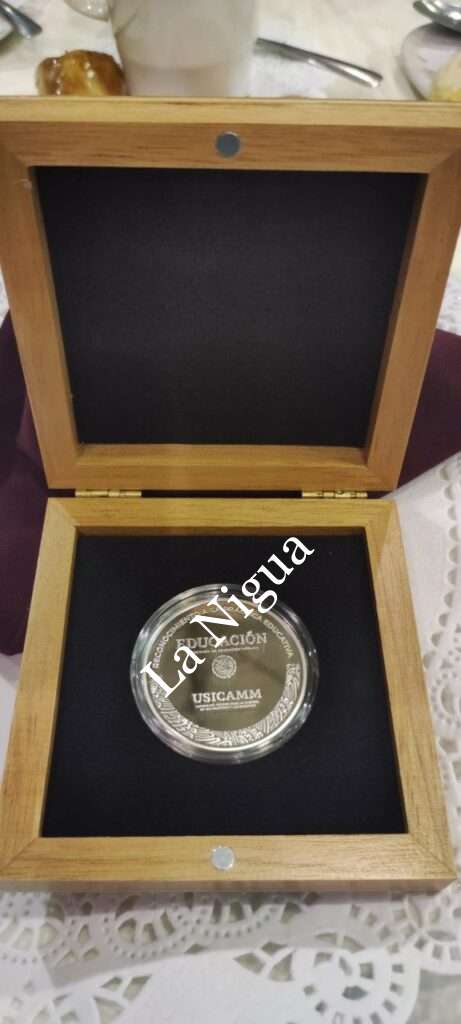 Su trabajo fue analizado y se realizó un concurso sobre los trabajos implementados por profesores de todo el país y el fortinenses obtuvo una de las calificaciones más altas, por lo que le fue otorgada esa medalla que dice Reconocimiento a la Práctica Educativa Educación, Secretaría de Educación Pública, USICAMM.