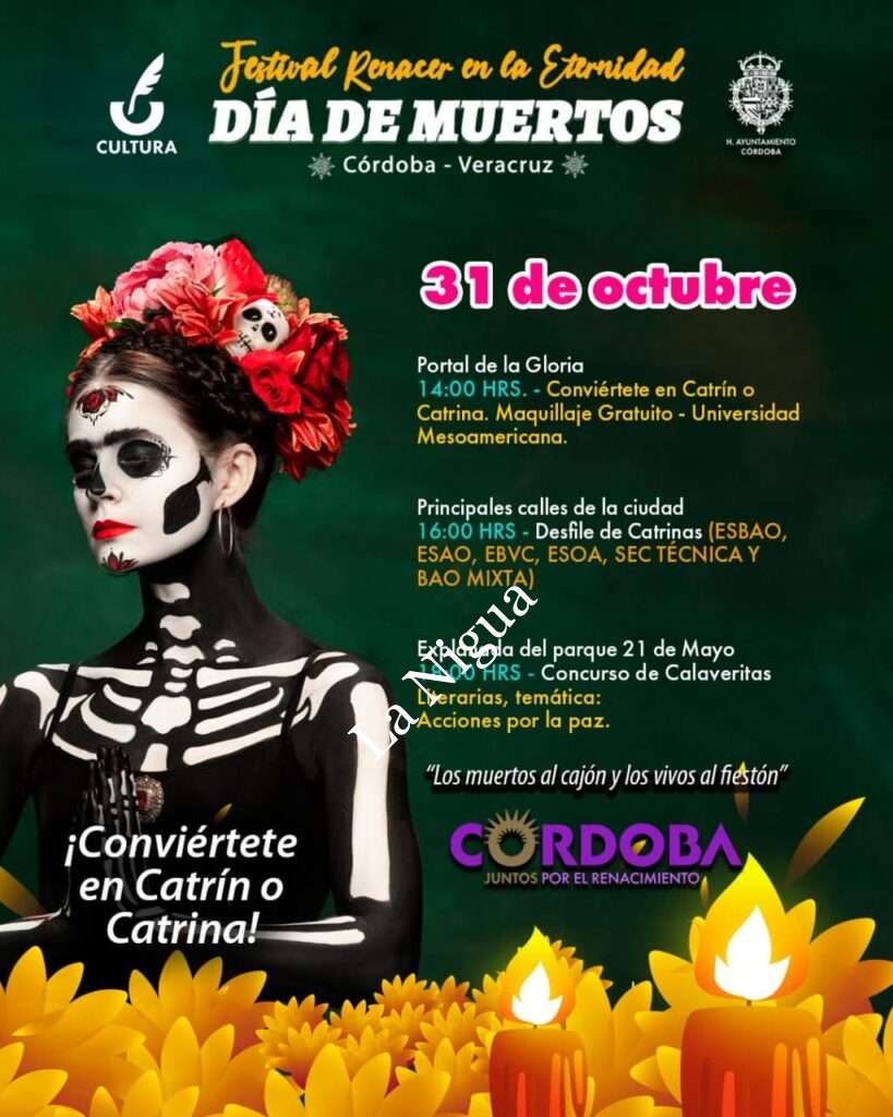 Además, no te pierdas el desfile de catrinas por parte de alumnos de la Esbao por las principales calles de la ciudad, así como el concurso de Calaveritas Literarias a partir de las 18:00 horas🕯