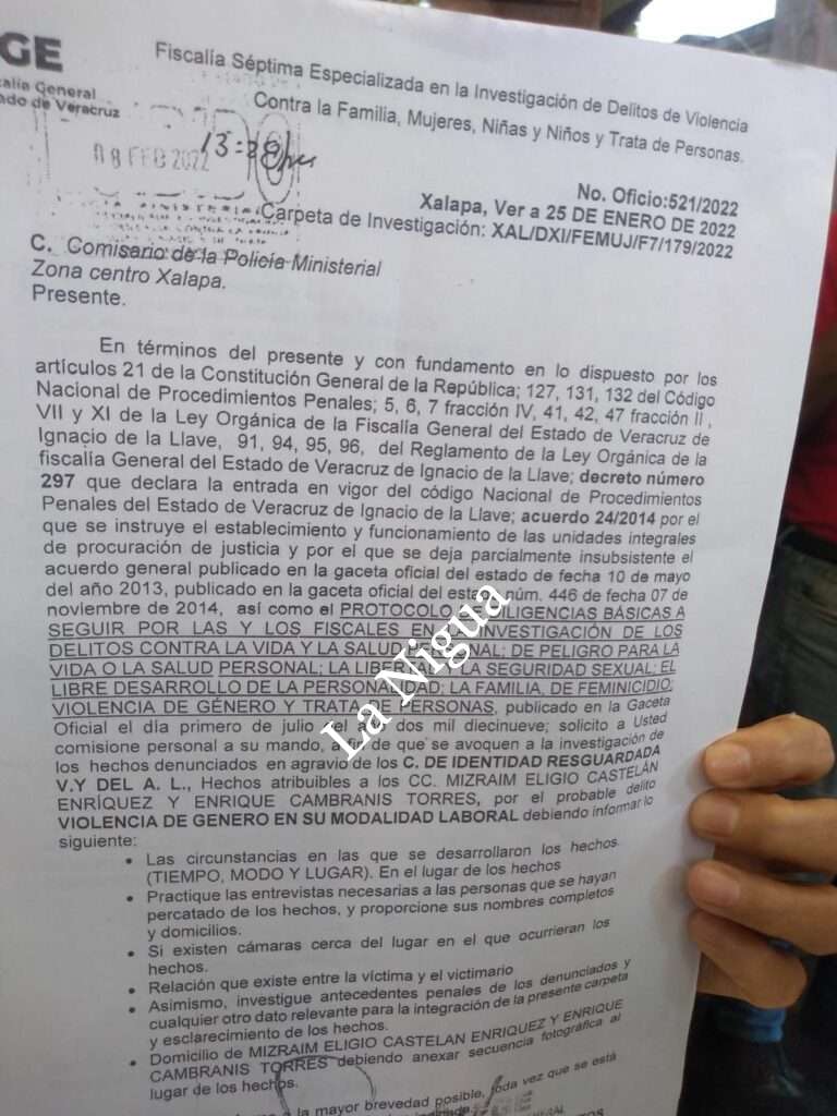 Indicó que trabajó desde julio del 2008 hasta el 28 de enero de este año para el Comité, siendo despedida injustificadamente por Mizraim Eligio Castelán Enríquez. Por lo que acudió a la Fiscalía a presentar una denuncia, siendo integrado el expediente con el número 179 y firmado por la Fiscal Séptima, especializada en las investigaciones de delitos de violencia contra la familia y mujeres, niñas y niños y de trata de personas, Yesenia Zabaleta Méndez.
