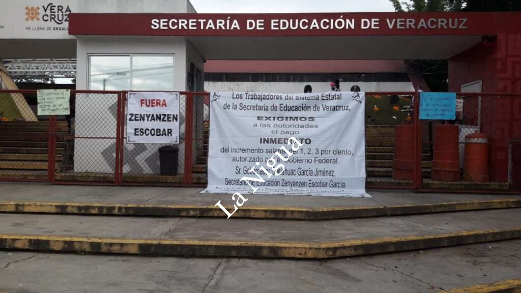 Los manifestantes colocaron varias lonas en las entradas y salidas de estas oficinas de la secretaría de educación de Veracruz.