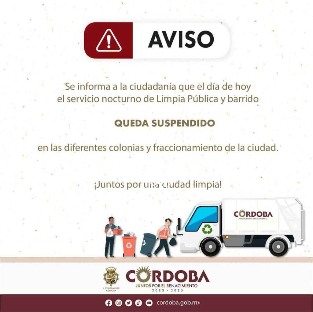 El servicio de Limpia Pública y Barrido nocturno queda suspendido únicamente hoy martes 10 de enero.