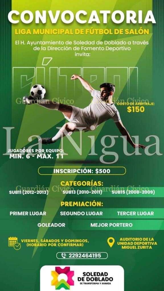 El H. Ayuntamiento y la Dirección de Fomento Deportivo invita a los niños, niñas y jóvenes del municipio y aledaños a participar en la Liga Municipal de Fútbol de Salón.