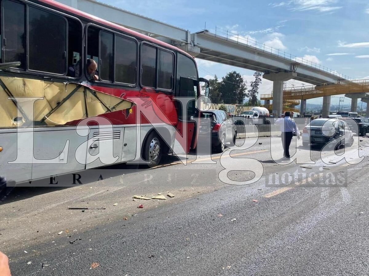 México.- Un trágico accidente paralizó este lunes la autopista México-Puebla a la altura del kilómetro 21, dejando la vialidad completamente cerrada en ambos sentidos. Un tráiler que presuntamente perdió los frenos impactó contra varios vehículos, prensando uno de ellos y dejando a varias personas atrapadas.