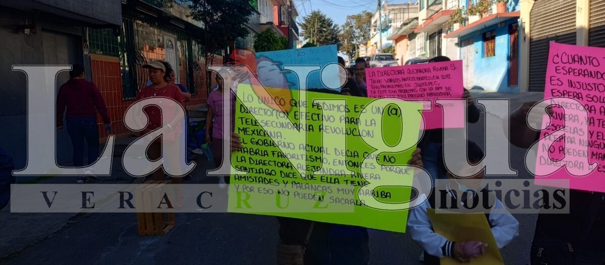 Xalapa, Ver. — Padres de familia de la telesecundaria "Revolución Mexicana", ubicada en la colonia Revolución, bloquearon la avenida Atenas Veracruzana para exigir el nombramiento de un director o directora definitiva. De acuerdo con Andrea Domínguez Zendejas, tesorera de la asociación de padres de familia, la escuela lleva 16 meses sin una autoridad titular, luego de que la directora efectiva dejara el cargo sin explicación. Desde entonces, han recibido directores temporales por periodos cortos, lo que ha generado inestabilidad en la administración del plantel. "Este es el primer aviso. Si no tenemos respuesta, tomaremos el plantel de manera indefinida hasta que asignen a un director o directora de tiempo completo. Estamos cansados de acudir a la Secretaría de Educación de Veracruz (SEV) sin obtener solución", advirtió Domínguez Zendejas. Los manifestantes portan cartulinas con consignas exigiendo atención a su demanda. El bloqueo ha generado un severo congestionamiento vehicular en la zona. En la telesecundaria estudian alrededor de 300 alumnos, quienes han sido afectados por la falta de una dirección estable. Los padres esperan una pronta respuesta por parte de la SEV para evitar tomar medidas más drásticas.