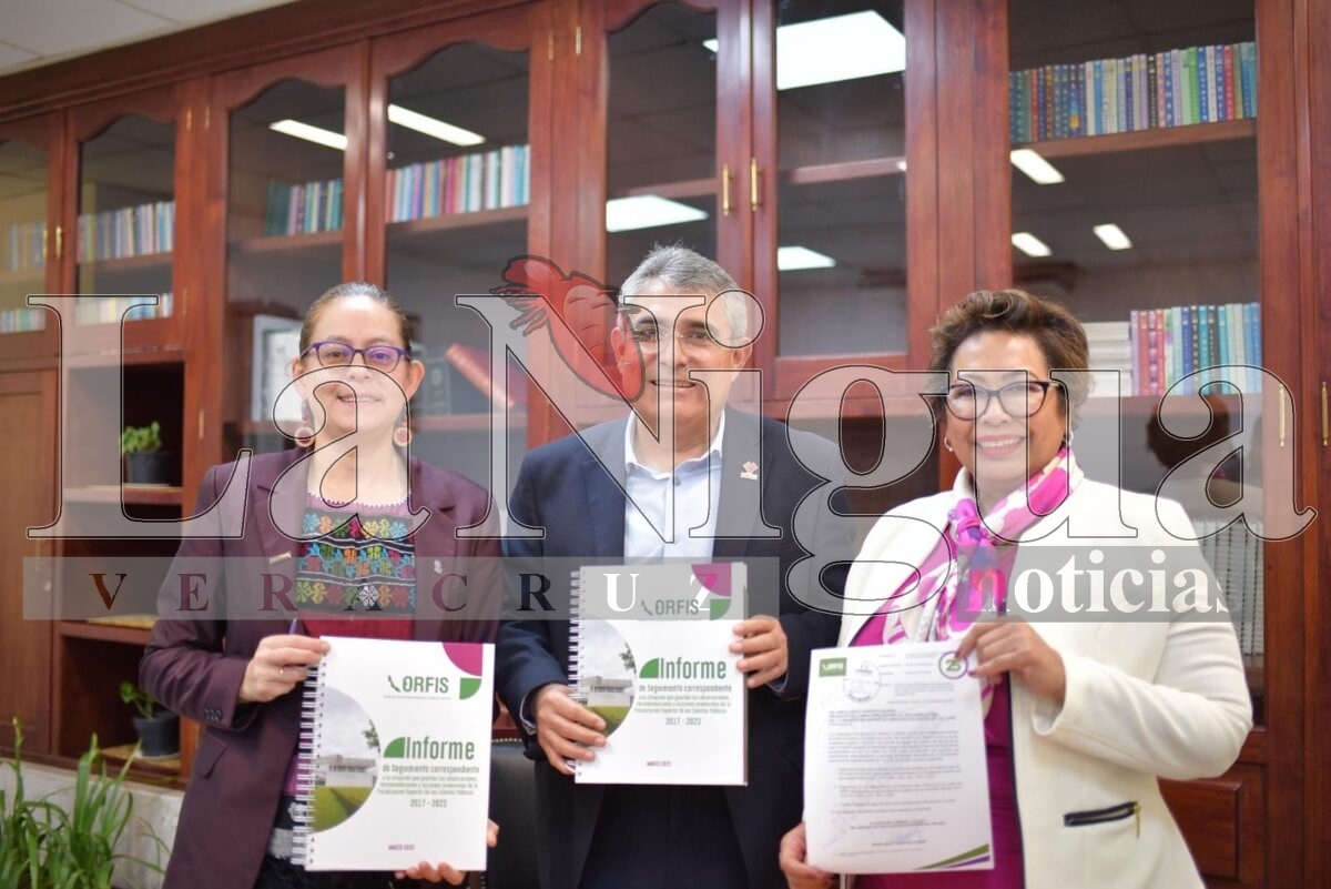 Xalapa, Ver., 27 de febrero de 2025.- Con la presencia de la presidenta de la Mesa Directiva, diputada Tanya Carola Viveros Cházaro, y del presidente de la Junta de Coordinación Política (Jucopo), diputado Esteban Bautista Hernández, el presidente de la Comisión Permanente de Vigilancia, diputado Miguel Guillermo Pintos Guillén, recibió de la titular del Órgano de Fiscalización Superior del estado (Orfis), Delia González Cobos, el informe de seguimiento correspondiente a la situación que guardan las observaciones, recomendaciones y acciones promovidas de la fiscalización superior de las Cuentas Públicas 2017 a 2023.