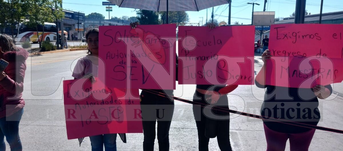 Xalapa, Ver. – Un grupo de padres y madres de familia de la Escuela Primaria Federal "Justo Sierra", ubicada en la colonia Progreso Macultepec, se manifestó en el plantel escolar en protesta por la separación de dos maestras de primero y tercer grado.