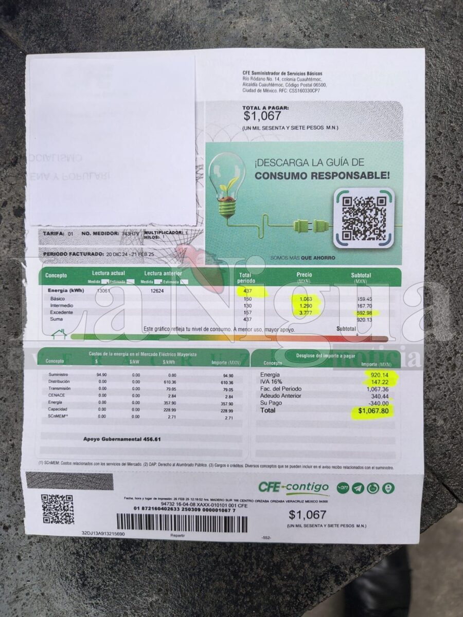 Orizaba, Veracruz. — Integrantes del Frente Nacional de Lucha por el Socialismo (FNLS) y el Frente de Acción Revolucionaria (FAR), se manifestaron este lunes frente a las oficinas de la Comisión Federal de Electricidad (CFE) en Orizaba, para denunciar cobros excesivos en recibos de luz que, aseguran, carecen de justificación y afectan a familias de escasos recursos. Adriana Chávez, vocera del FNLS, detalló que en los primeros días del año al menos 50 personas han reportado incrementos abruptos en sus facturas eléctricas. "Quienes antes pagaban 150 o 200 pesos ahora reciben cobros de 700, mil pesos o más. No hay explicación técnica ni aumento en su consumo que justifique esto", afirmó. La activista subrayó que la mayoría de los afectados son personas en situación económica vulnerable, para quienes estos montos representan un golpe devastador.